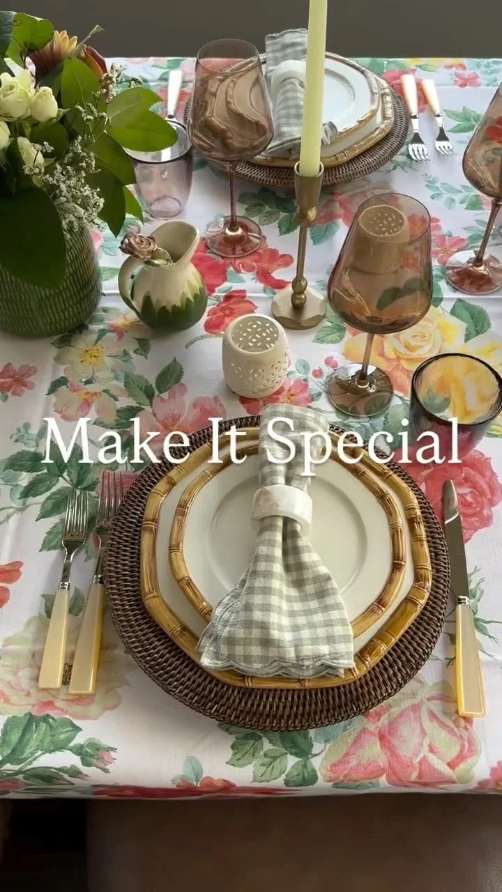 This handmade French country linen features blues, pinks, greens, and white in a floral pattern we can’t get enough of.